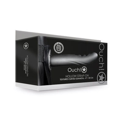 Ouch! Textured Curved 8 in. Hollow Strap-On Gunmetal