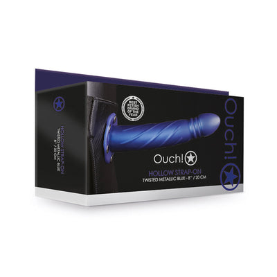 Ouch! Twisted 8 in. Hollow Strap-On Metallic Blue