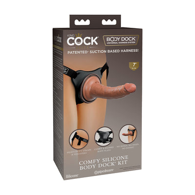 Pipedream King Cock Elite Comfy Silicone Body Dock Kit With 7 in. Realistic Suction Cup Dildo Tan/Black