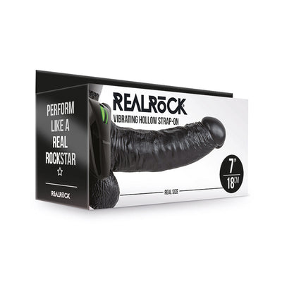 RealRock Realistic 7 in. Vibrating Hollow Strap-On With Balls Black