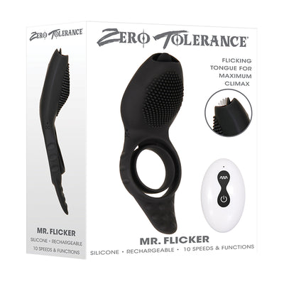 Zero Tolerance Mr. Flicker Rechargeable Remote-Controlled Flicking Tongue Vibrating Silicone Cockring Black