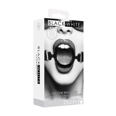 Ouch! Black & White Silicone Ring Gag With Adjustable Bonded Leather Straps Black