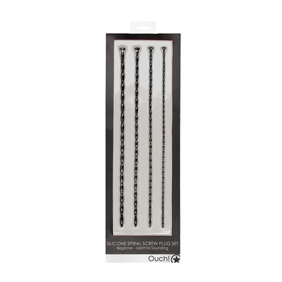Ouch! Urethral Sounding Beginner Silicone Spiral Screw Plug Set Black 3 mm / 4 mm / 5 mm / 6 mm