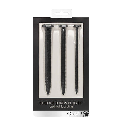 Ouch! Urethral Sounding Textured Silicone Screw Plug Set Black 9 mm / 13 mm / 16.5 mm