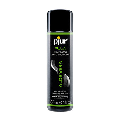 pjur AQUA Aloe Vera contains natural and nourishing Aloe Vera and is gentle on skin while providing exceptional lubrication that is never sticky or tacky. pjur AQUA Aloe Vera premium water-based personal lubricant adds moisture to decrease friction during sex and play is ideal for daily use and pairs perfectly with your favorite sex toy.