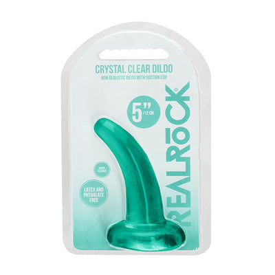 RealRock Crystal Clear Non-Realistic 5 in. Curved Dildo With Suction Cup Turquoise