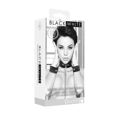 Ouch! Black & White Adjustable Velcro Collar With Leash & Wrist Cuffs Black